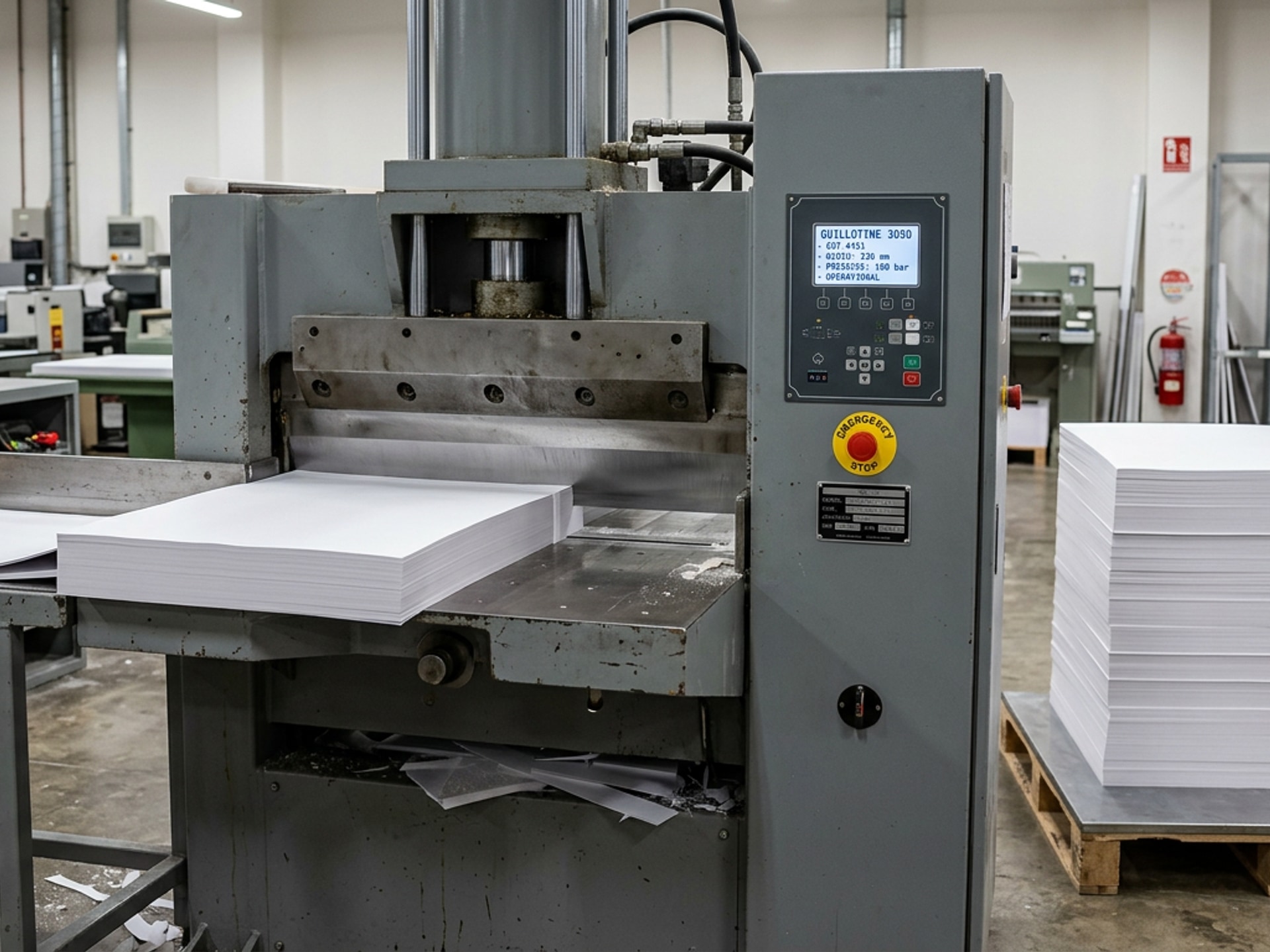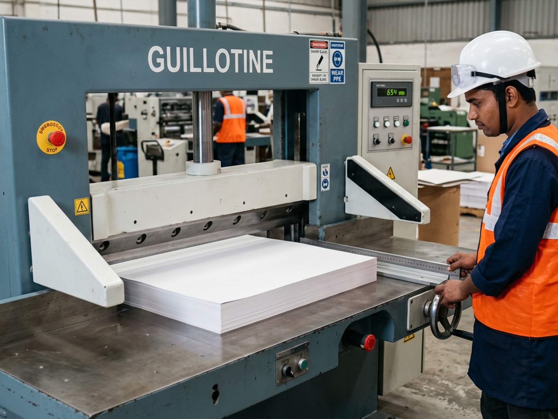 Wide ViewPrecision guillotine cutting of ITC FBB, duplex and kraft board to exact converter dimensions