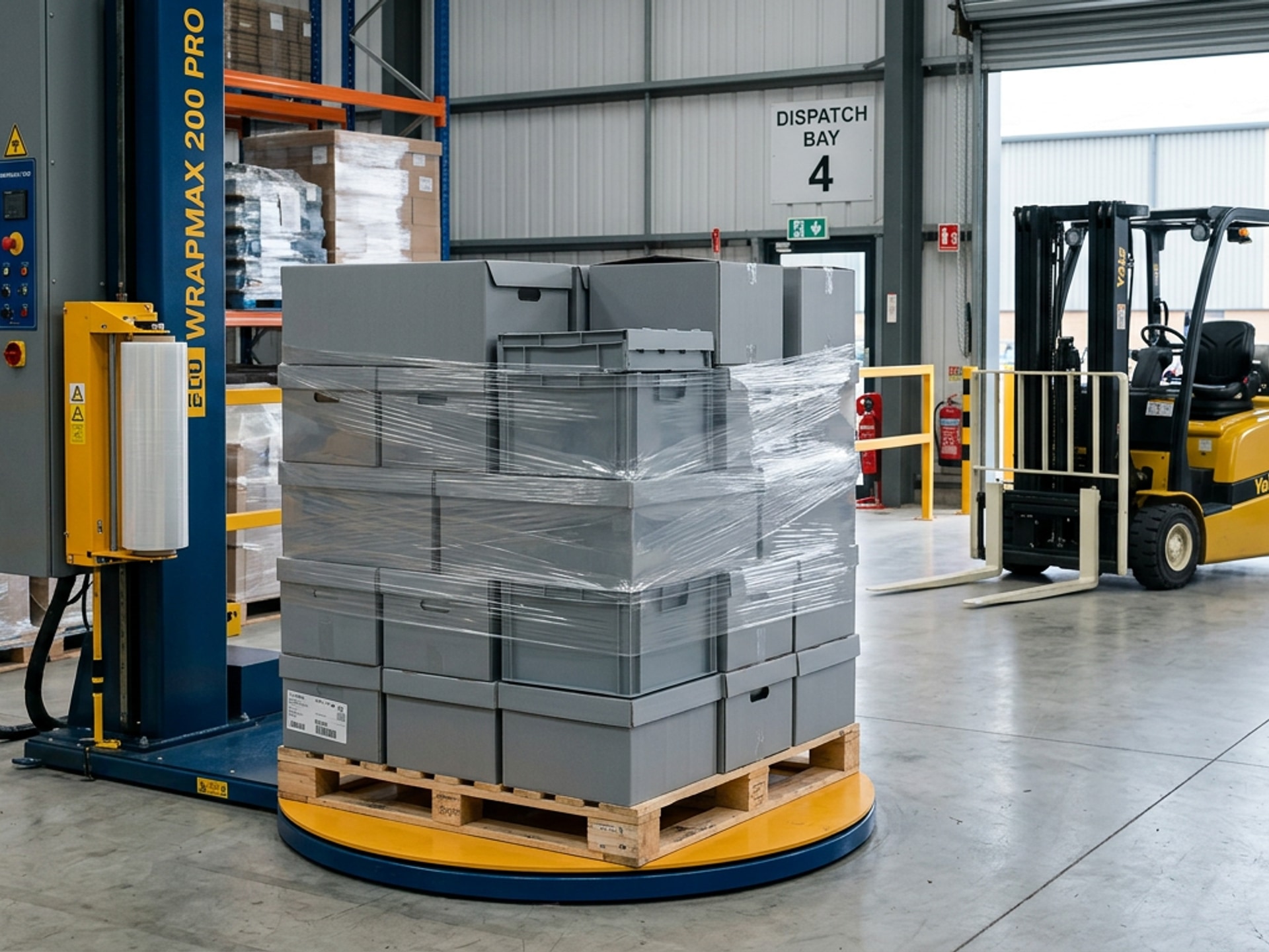 Wide ViewAutomated pallet stretch wrapping and forklift-assisted loading for transit-ready pallet despatch