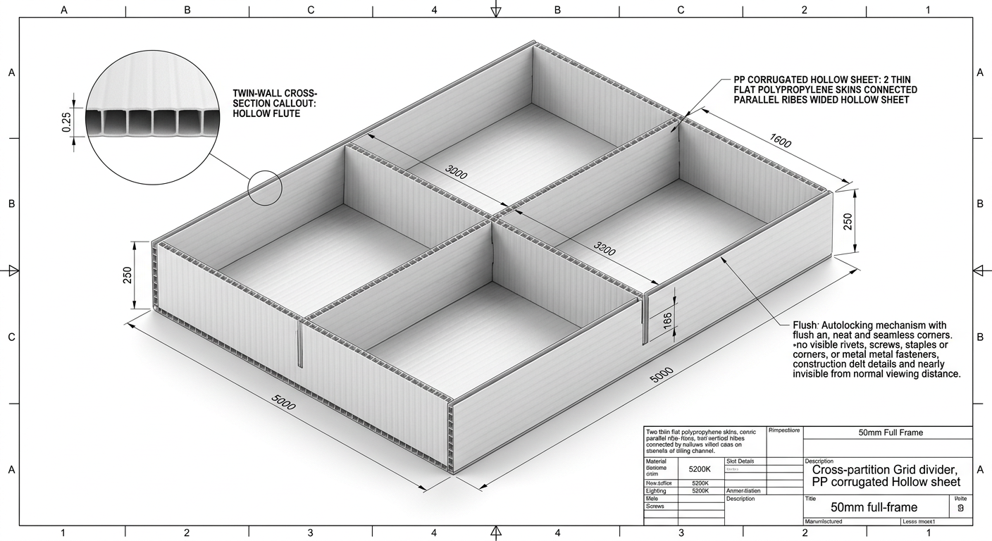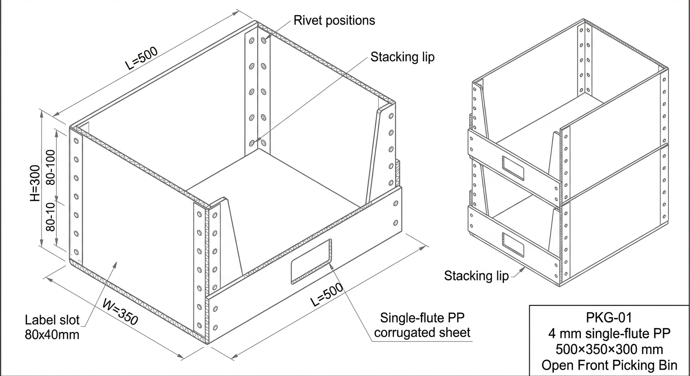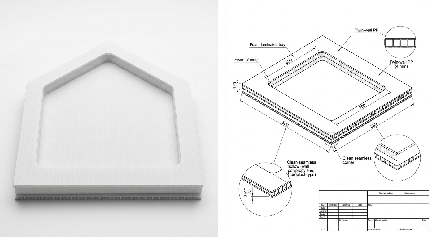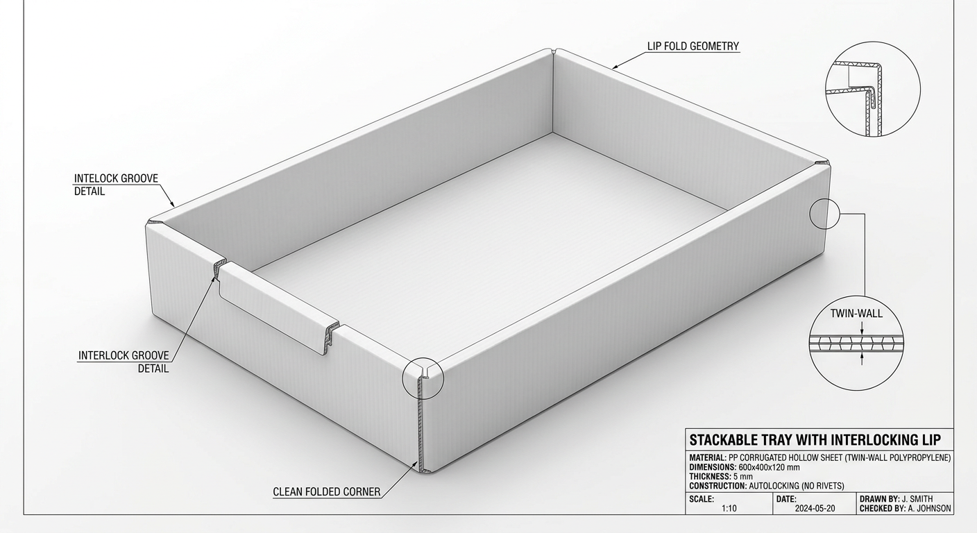 We convert single-flute PP corrugated sheet into returnable industrial packaging — boxes, trays, separators, layer pads, bins, and flooring — engineered for your plant, not your catalogue.